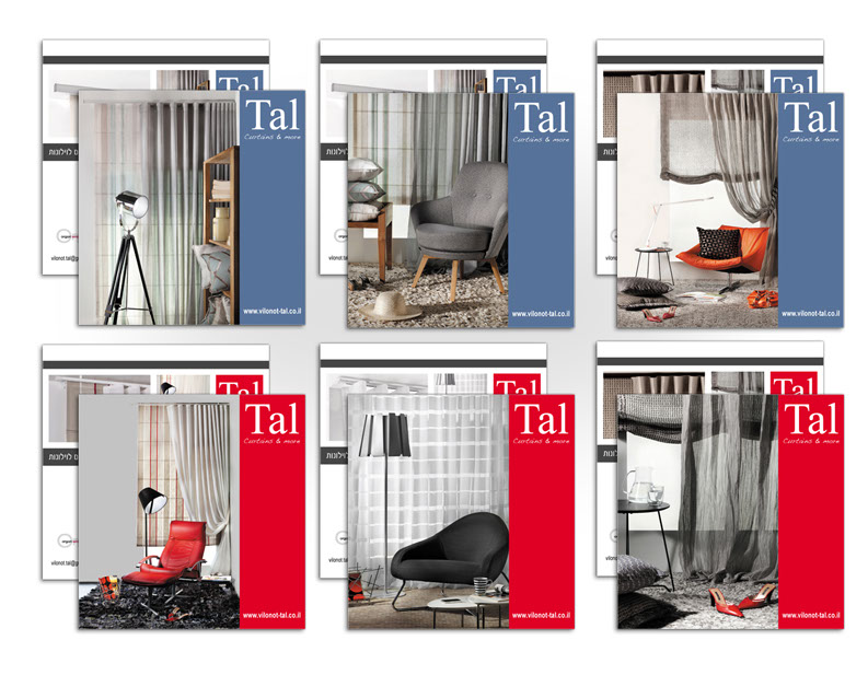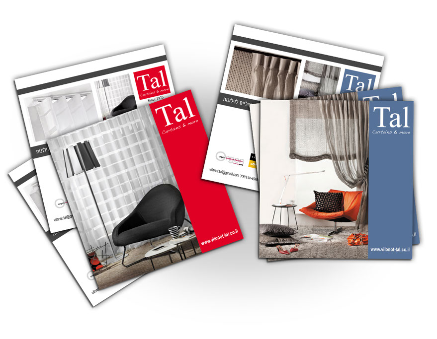 ,התוצאה: שם החברה הוחלף, עוצבו לוגו חדש ופרטים נלווים היוצרים מעטפת מושלמת לצרכים משרדיים, כמו כן יצרנו סדרת גלויות הממחישות את אופי המוצרים הסופיים, אשר צולמו בהפקה מיוחדת עבור וילונות טל. מיתוג